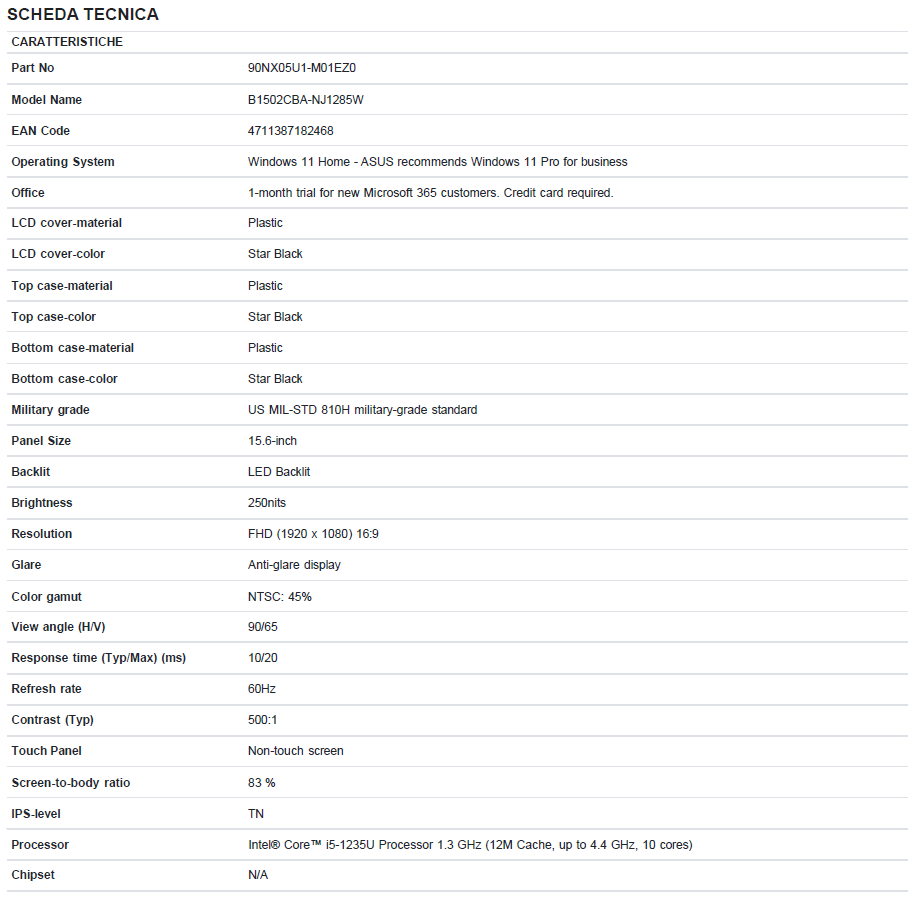 NB ASUS Commercial NX i5-1235U